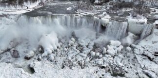 EKSTREMNA HLADNOĆA U KANADI I USA: Snimci dronom zabeležili Nijagarine vodopade...