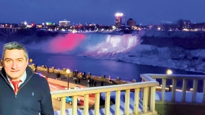 Dan državnosti Republike Srbije svečano će danas biti obeležen i u dalekom Ontariju, a Srbiji u čast, Nijagarini vodopadi na pola sata biće u bojama srpske trobojke. Nemi svedok tome biće i naš Nikola Tesla oličen u bronzi, dok svetlosnim spektaklom komanduje jedan Pančevac. Inženjer Slobodan Marin, vrhunski majstor rasvete, koji više od dve decenije dizajnira i održava reflektore koji obasjavaju ovaj prirodni fenomen. On je čovek poreklom sa ovih priostora, impozantne radne biografije, a na ovaj posao je, kaže, najponosniji u svojoj karijeri. Angažovala ga je ambasada naše zemlje u Kanadi, sa ambasadorom Dejanom Raljevićem na čelu. Naša ambasada se zainteresovala, mogu li boje naše zastave da se projektuju na Nijagari –odgovor je bio potvrdan.