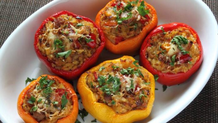 Paprike očistite i spremite za punjenje. Pirinač koju ste prethodno skuvali pomešajte sa sitno iseckanim belim lukom, izdinstanim šampinjonima, peršunom, pavlakom, jajetom i puterom.