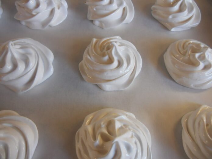 Premestiti sneg u kesicu sa zvezdastim ili okruglim nastavkom. Istiskivati željene oblike puslica vrlo malo razmaknute, jer se neće širiti.