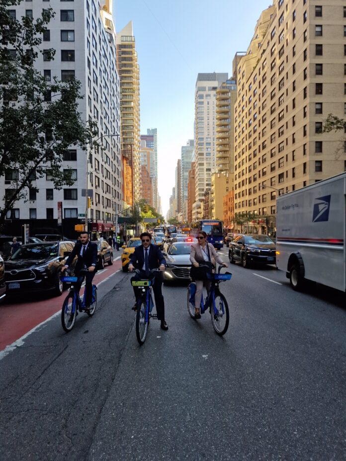 #Njujork; Predsjednik Vlade Crne Gore @DritanAbazovic stigao je na otvaranje Generalne skupštine Ujedinjenih nacija, koristeći biciklo, zajedno sa svojim saradnicima. 1/2