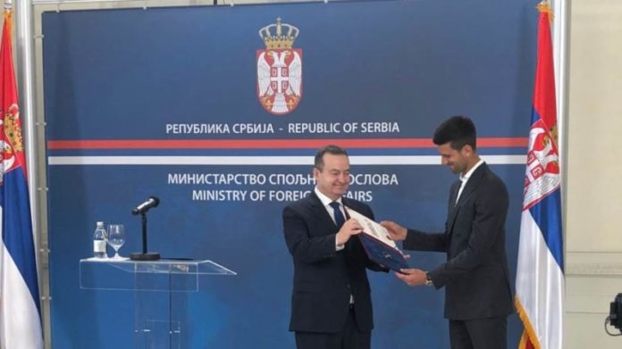 Dačić je odao priznanje Novaku Đokoviću za sveukupan doprinos u diplomatiji dodelivši mu nagradu za izuzetan lični angažman i doprinos u promociji interesa Republike Srbije i njenog naroda u svetu.