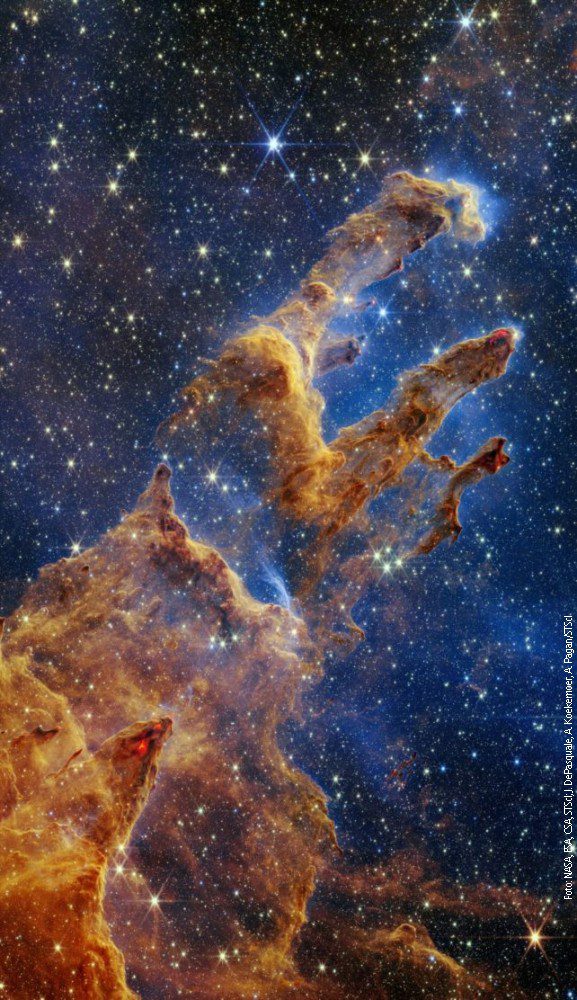 Jedna od fotografija koja je najviše iščekivana od teleskopa „Džejms Veb“ konačno je tu. Svojim segmentisanim „zlatnim okom“, svemirski teleskop pogledao je duboko u srce magline Orao, udaljene od Zemlje oko 6.500 svetlosnih godina, i dao nam fantastičan snimak jedne od najpoznatijih struktura u kosmosu – Stubova stvaranja.