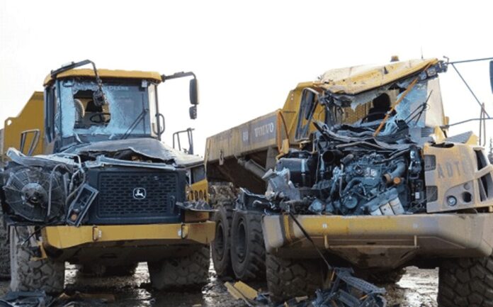 Fotografije koje je dostavio RCMP pokazuju razmere štete na opremi i imovini kompanije i izvođača. Najmanje dva teška bagera su prevrnuta na bokove, kamioni su teško oštećeni, a prenosiva kancelarija pokazala je veliku štetu na spoljašnjosti, sa srušenim delovima fasade.