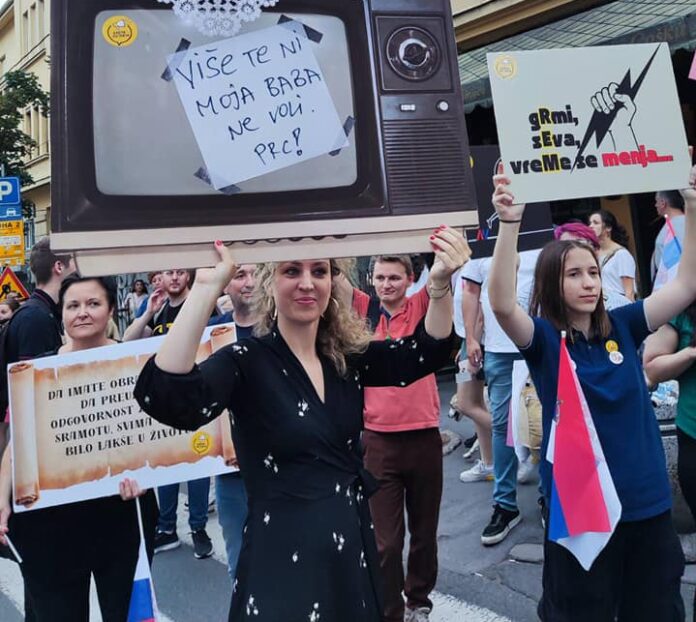 Građani su se, kao i do sada, okupili ispred Skupštine Srbije, šetali skoro tri kilometra i obrazovali obruč oko zgrade Vlade Srbije.