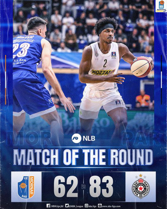 Košarkaški Partizana ubedljivo su savladali Mornar u Baru sa 83:62 u meču 4. kola ABA lige. Ekipa Željka Obradovića je znala da je plej Mornara Fets Rasel glavna pretnja i fokusom u odbrani upravo na njemu su zaršili “pola posla”.