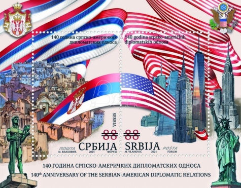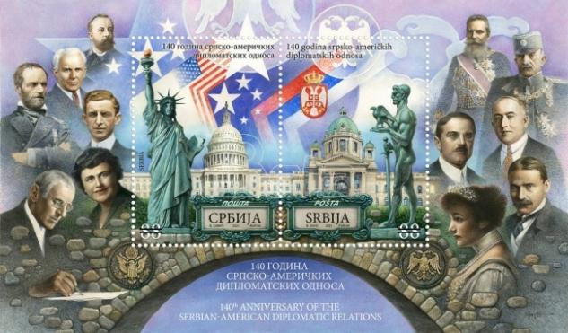 Povodom velikog jubileja 140. godina zvaničnih diplomatskih odnosa SAD-a i Srbije, JP Pošta Srbije u saradnji sa ambasadom SAD u Beogradu, 15. oktobra 2021. godine emitovaće dve prigodne poštanske marke u formi bloka, saopšteno je danas iz Pošte Srbije.