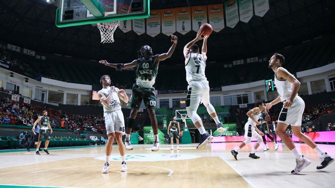 Uniks je od početka meča bio bolji rival, a tokom prvog poluvremena imao je i dvocifrenu prednost.Crno-beli u finišu prvih 20 minuta dobrom igrom u odbrani smanjili su na minus pet (37:35)