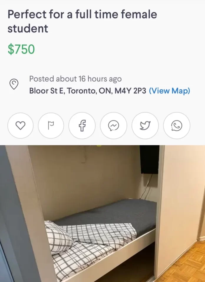 Od kreveta natrpanih na vrhovima stepeništa, do dušeka usred kuhinja , potencijalni stanari u Torontu su gotovo sve videli, ali nedavna objava na Kijidžiju je nadmasila sve.