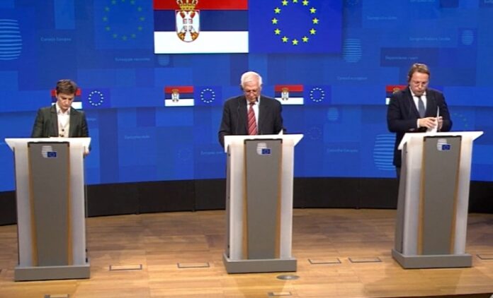 Premijerka Srbije Ana Brnabić razgovarala je danas u Briselu sa evropskim komesarom za proširenje Oliverom Varhejijem i visokim predstavnikom EU za spoljnu politiku i bezbednost Žozepom Borelom uoči sednice Saveta za stabilizaciju i pridruživanje Srbija – EU.