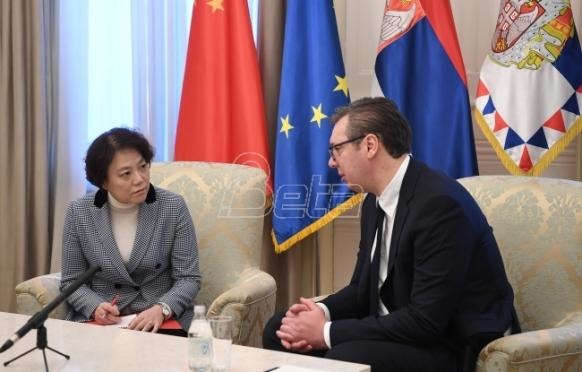 Vučić je ambasadorki preneo zahvalnost na velikoj podršci koju Kina pruža narodu Srbije.