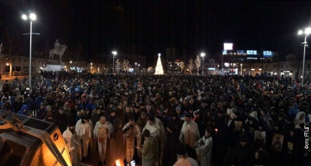 Nikšićani, predvođeni lokalnim sveštenstvom šetali su večeras ulicama Vuka Karadžića, Petom proleterskom i Njegoševom.