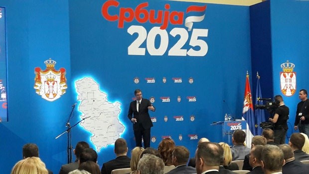 Predsednik Srbije Aleksandar Vučić izjavio je danas da će sprovođenjem programa investicionih projekata „Srbija 2025“ prosečna plata na kraju 2025. godine biti 900 evra, a penzija izmedju 430 i 440 evra.